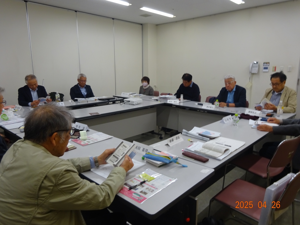 奈良PHP友の会は4月26日(土)午後、奈良市北部会館会議室で4月度例会を開催しました。2025年度最初の例会であり、総会とPHP誌読書会を行いました。午後1時30分より、藤原氏の総合司会で例会が始まり、信条唱和・瞑想に続き檜垣氏より会長として最後の挨拶の後、示野氏の議長のもと第1部の総会に移りました。