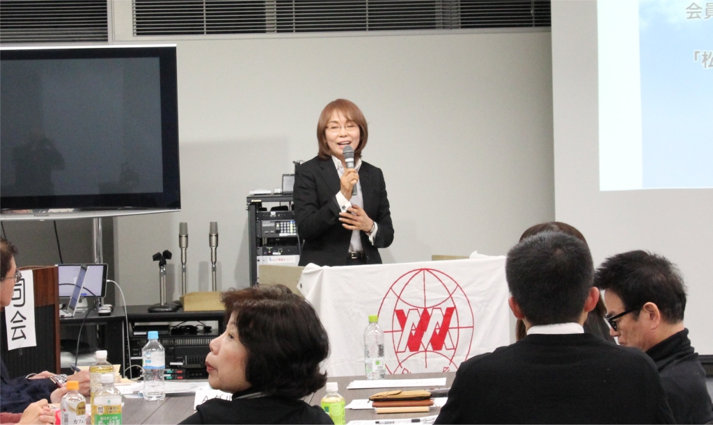 続いてのプログラム会員発表では、会員を代表して、大阪府地区長木下人美さんによる『松下幸之助翁とわたし』と題しての体験発表が行われました。