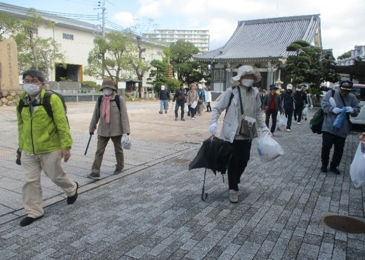 空襲80年、震災30年にちなみ、被災した寺社を中心にえびす社や大国社、日本3大仏で金属供出された兵庫大仏や一遍上人を祀る真光寺、平清盛塚、初代県庁館などを巡りながらのクリーン活動。