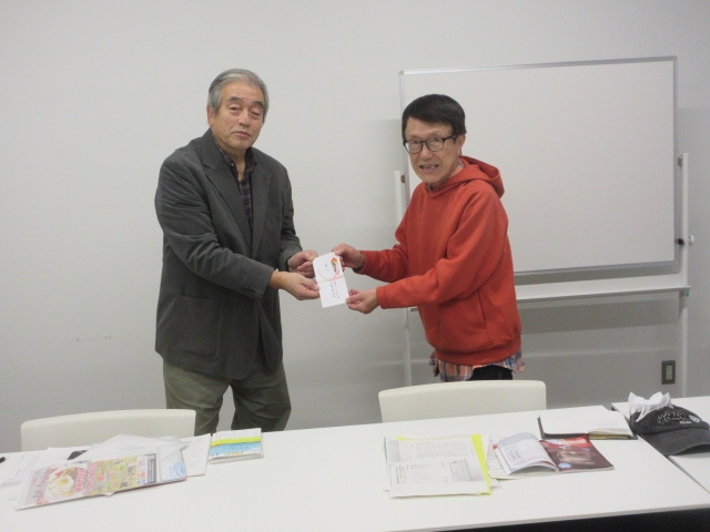 11月16日(日)に宮城県地区講演会での決算黒字の中から、アマニ・ヤ・アフリカに寄付金1万円を寄付することになり、アマニ・ヤ・アフリカの副理事長である吉村さんに、