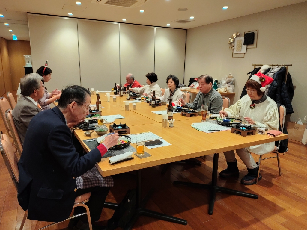 そしてプレゼント交換!楽しいプレゼントに大はしゃぎ!奈良クイズに美味しい食事、、、♪上を向いて歩こう合唱♪と続き、楽しい2時間はあっという間に過ぎ、ラストは馬戸様の閉会のご挨拶、来年はPHP友の会発足50周年の記念すべき年、K-POTも存在感を発揮して更に発展させて行きましょうと述べられて懇親会はお開きとなりました。