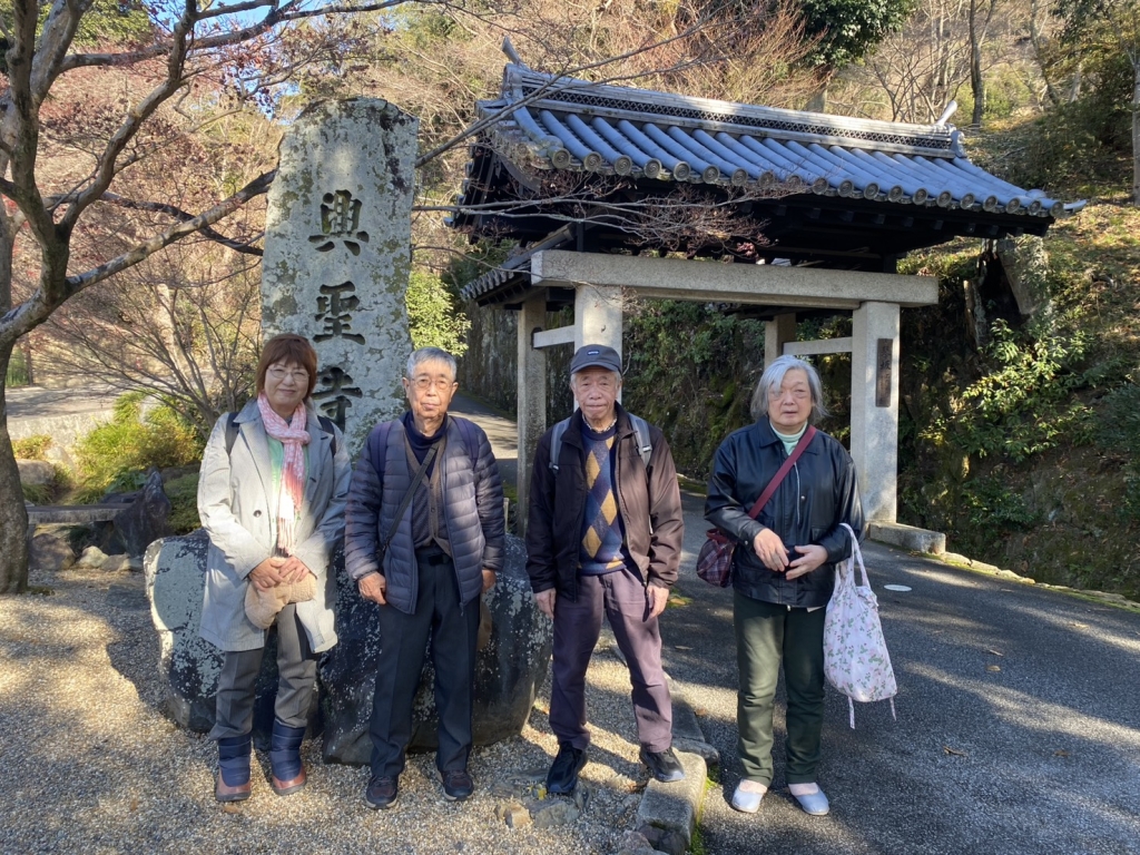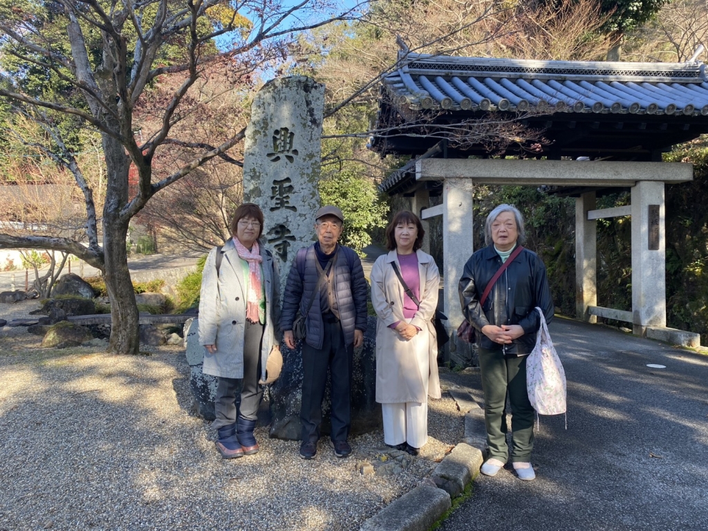 食事会のあとは、冬にしては強い太陽の日差しで水面がきらきら輝く宇治川の小径を散策し、すでに落葉したものの樹齢重ねた櫟や松、楓を愛でながら興聖寺へ歩きました。