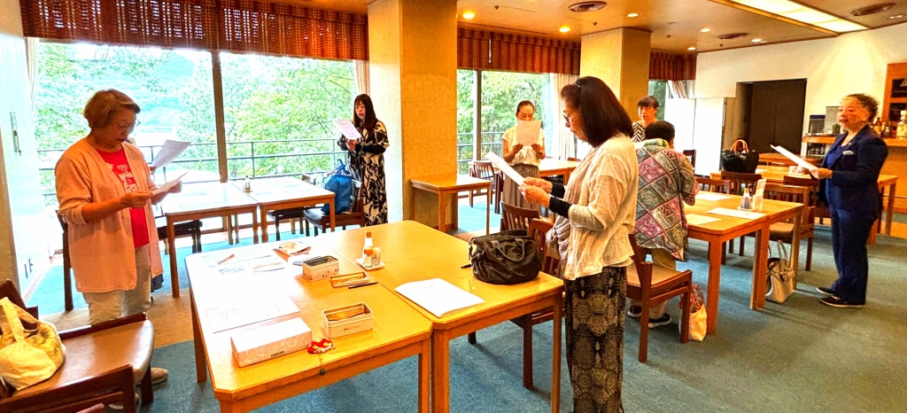 河野の開会挨拶に続き、小川すま子さんの先導によりPHPソング「愛はともだち」を合唱。続いて「私たちの信条」「五つのちかい」を力強く唱和し、全員で「素直な心」を整えてスタートしました。