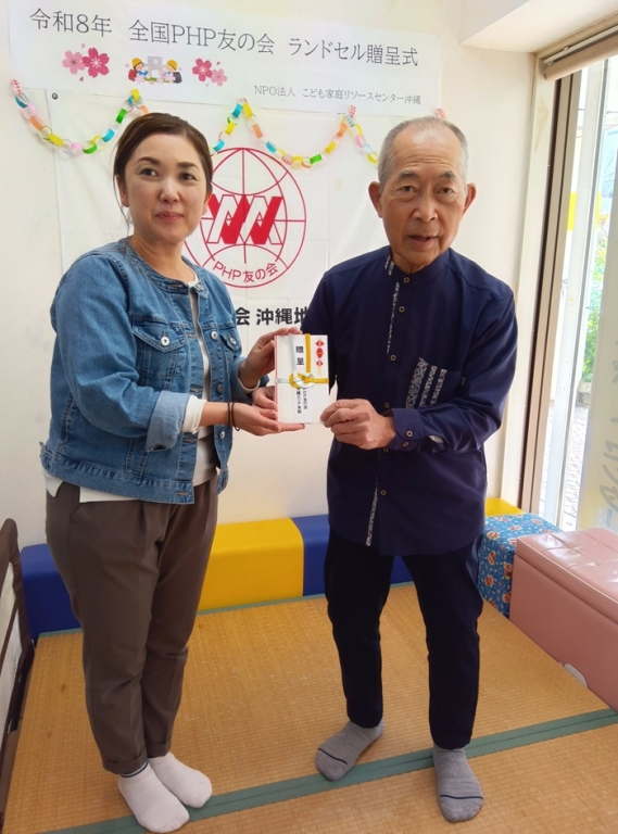 2026(令和8)年1月23日(金)14時より、令和7年度社会貢献事業【思いやり運道寄付金】贈呈式がおこなわれました。会場は送付先の「こども家庭リソースセンター沖縄」の事務所です。