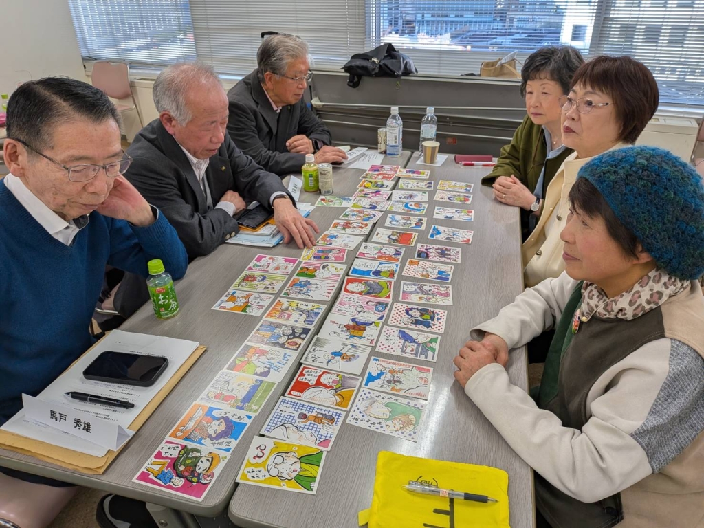 講演の最後には大人用川柳カルタを行い、会場は一気に活気の渦で盛り上がりました。脳活に直結するカルタとは絵札に「字」が無く、読み手の川柳の意味を描かれた絵で理解し、絵札を取り、裏側に書かれた「字」と読み手の最初の「字」と合致すれば当たりという特殊なカルタでした。