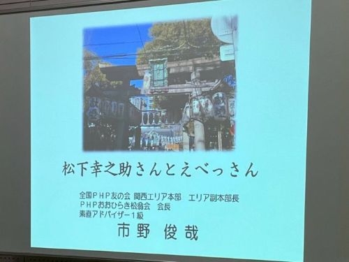 そして、ミニ講演として関西エリア副本部長の市野俊哉さんより、「松下幸之助さんとえべっさん」をテーマにご講演頂きました。